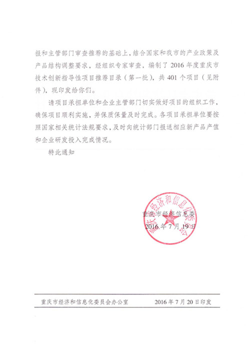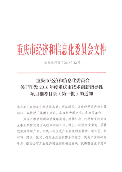 熱烈祝賀重慶綠色科技開發(fā)有限公司申報(bào)的“互聯(lián)網(wǎng)+”多色溫防霧霾、亮度遙調(diào)新一代LED路燈及遠(yuǎn)程智能控制系統(tǒng)成功列入《2016年度重慶市技術(shù)創(chuàng)新指導(dǎo)性項(xiàng)目》