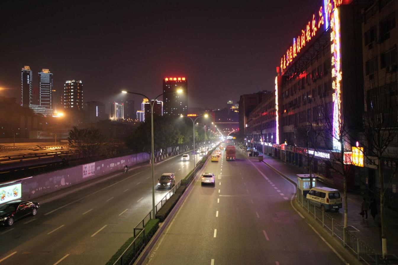 重慶市渝中區(qū)菜袁路實(shí)施的物聯(lián)網(wǎng)多色溫防霧霾LED人工智能路燈
