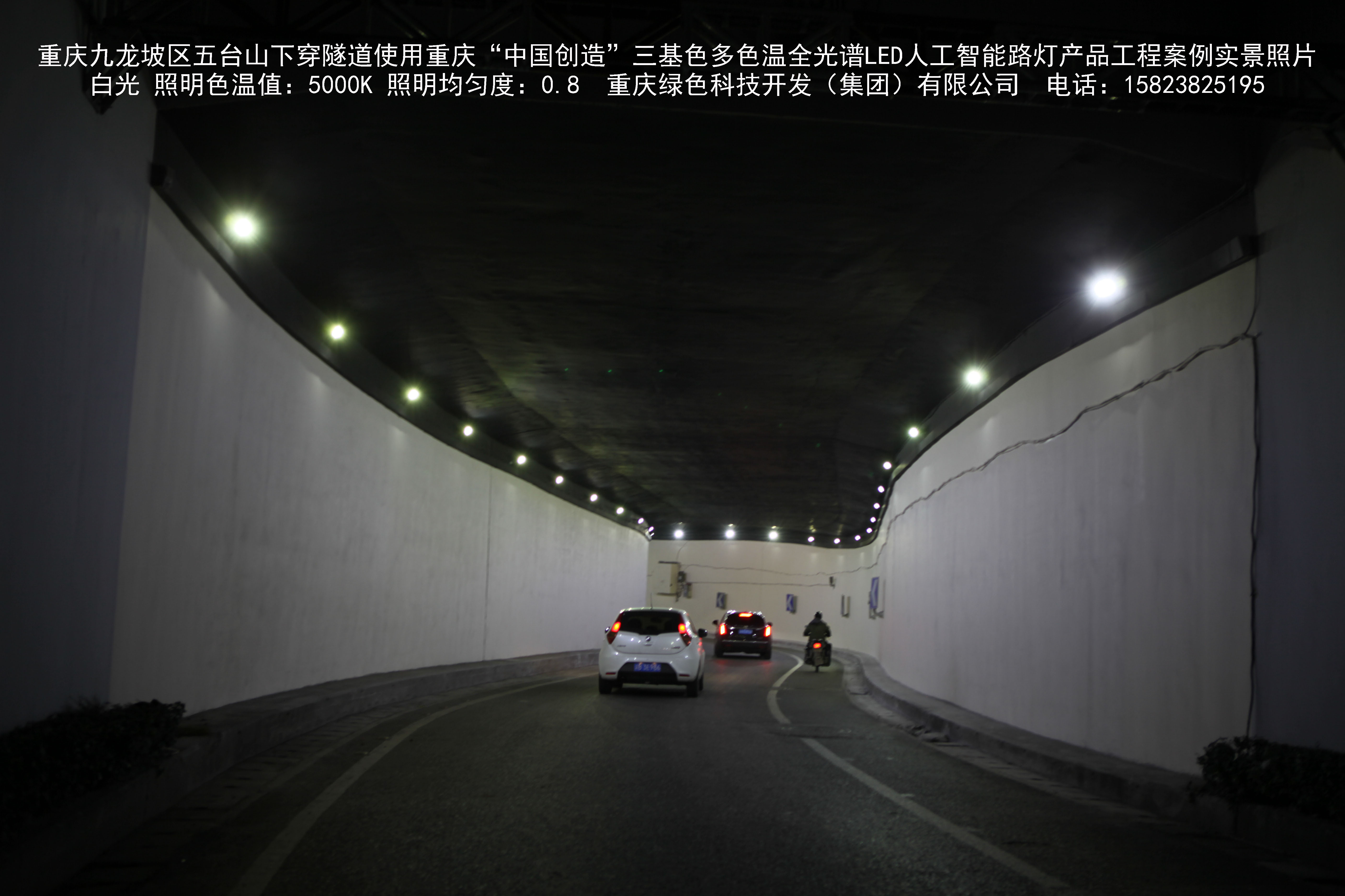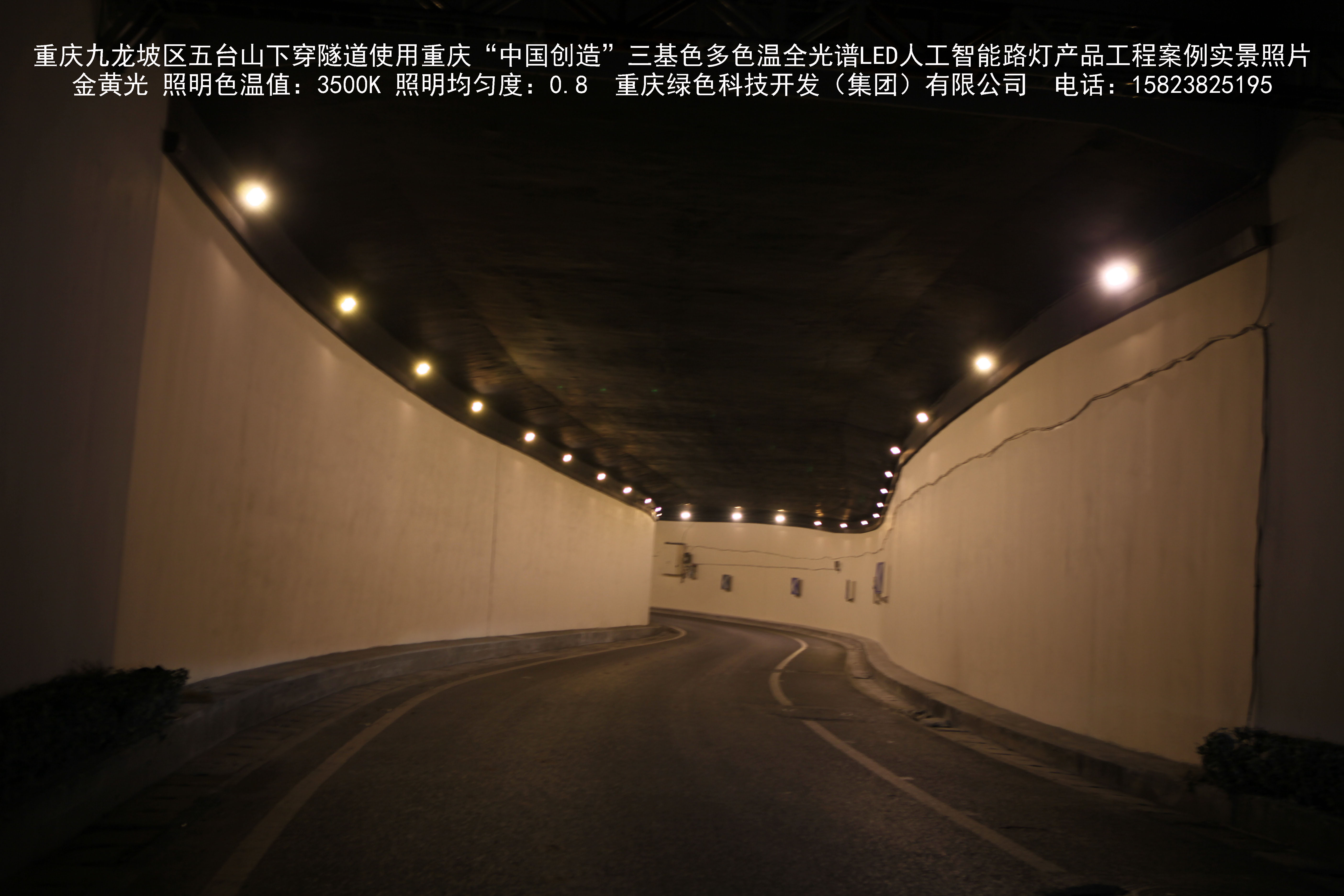2018年9月,重慶市九龍坡區(qū)城市管理局使用我司自主研發(fā)制造的重慶“中國創(chuàng)造”三基色多色溫全光譜LED人工智能隧道燈系列產(chǎn)品,實施了五臺山下穿隧道市政設施品質提升工程。該工程已全面竣工。工程實施后,極大地提高了城市照明清晰度、燈光均勻度、舒適度。通過智能終端實現(xiàn)單燈感知、線纜防盜報警,與原高壓鈉燈相比,節(jié)能率60%以上,有效解決了關閉控制回路或間隔關燈方式造成的照明暗區(qū),確保行人和車輛通行的安全,實現(xiàn)城市路燈照明系統(tǒng)的智能化管理,推進了智慧城市建設。
