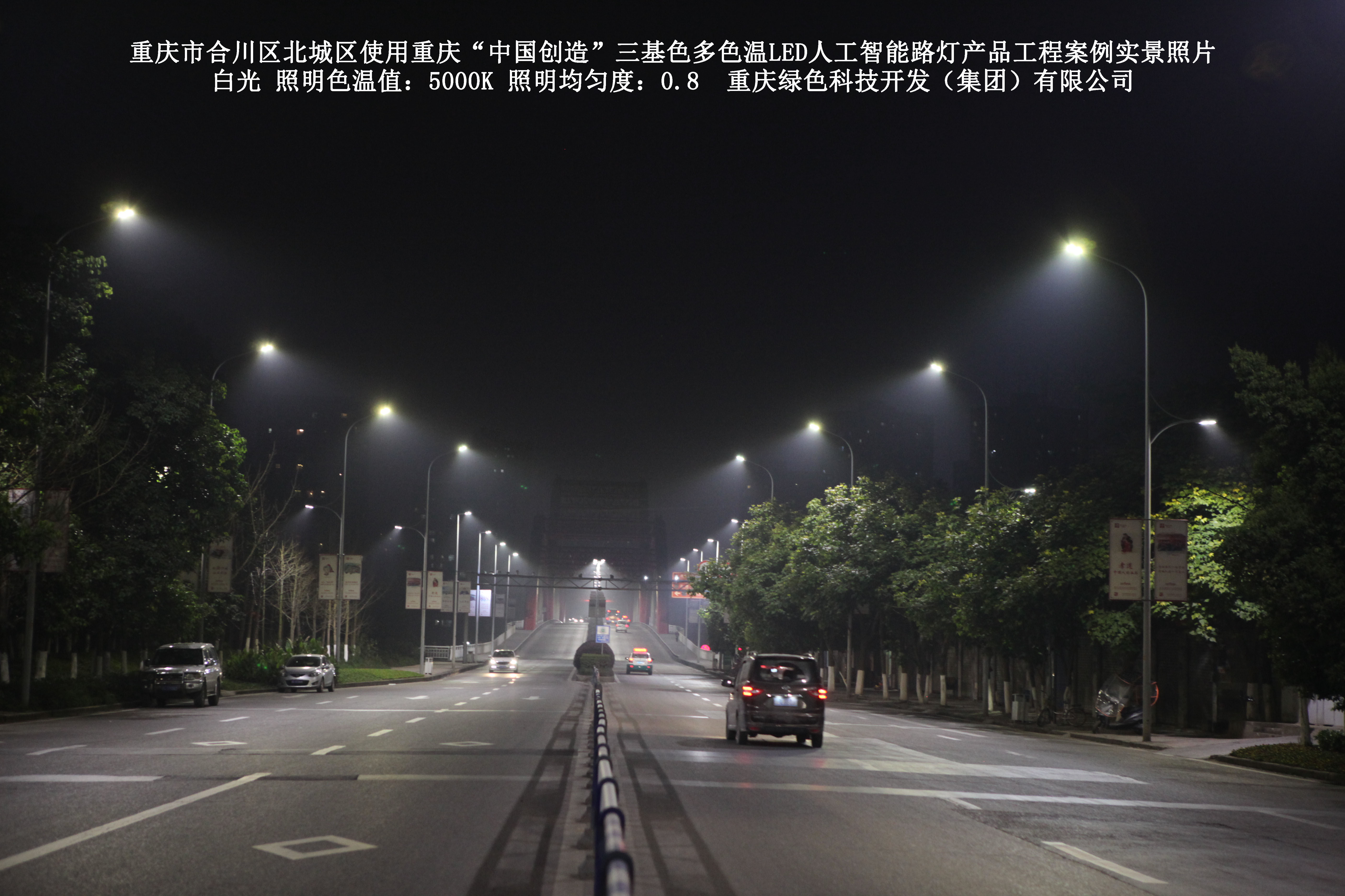 2019年1月,重慶市合川區(qū)城市管理局使用了我司研發(fā)制造的重慶“中國創(chuàng)造”三基色多色溫LED人工智能路燈5144盞,對(duì)合川區(qū)北城區(qū)實(shí)施了綠色照明科技節(jié)能改造工程,該工程已全面竣工。工程實(shí)施后,極大地提高了合川區(qū)北城區(qū)城市照明清晰度、燈光均勻度、舒適度。通過智能終端實(shí)現(xiàn)單燈感知、線纜防盜報(bào)警,與原高壓鈉燈相比,節(jié)能率60%以上,有效解決了關(guān)閉控制回路或間隔關(guān)燈方式造成的照明暗區(qū),確保行人和車輛通行的安全,實(shí)現(xiàn)城市路燈照明系統(tǒng)的智能化管理,推進(jìn)了智慧城市建設(shè)。