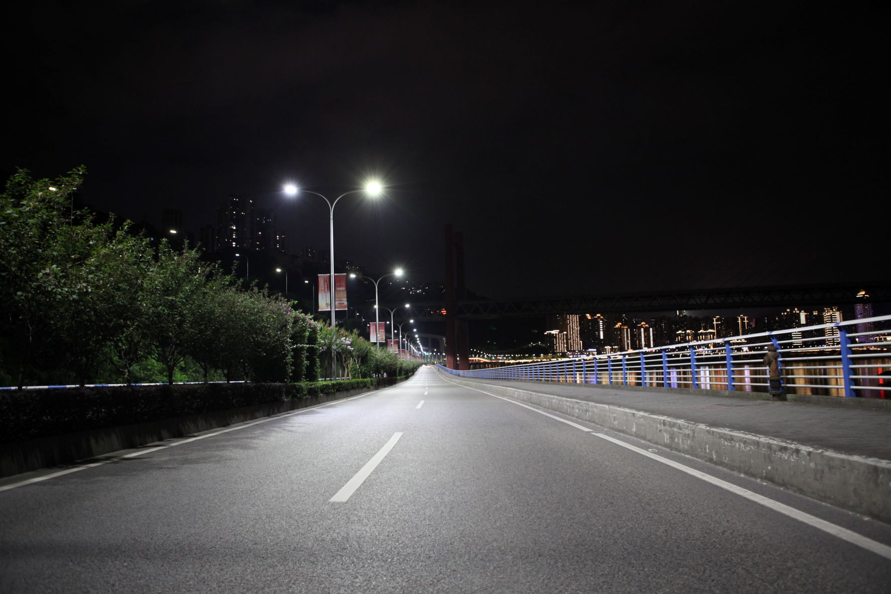 2021年6月,我司使用物聯(lián)網(wǎng)五基色多色溫全光譜LED智慧路燈對重慶市渝中區(qū)嘉濱路(朝天門至牛角沱段)、牛滴路(牛角沱至滴水巖段)實(shí)施了城市路燈照明改造工程,采取替換的方式將原來的680盞高壓鈉燈燈具改造為高效節(jié)能、可調(diào)變燈光色溫,照明更舒適的LED智能燈具。改造后燈具可采集環(huán)境溫度、濕度、PM2.5濃度、雨水等數(shù)據(jù),調(diào)整燈光最舒適色溫色彩照明值,提升色彩鮮艷度、照明舒適性,路面照度均勻度和亮度好、無光斑、顯色指數(shù)高、光色好、眩光小,大大提升了道路照明品質(zhì),獲得社會各界好評,成為嘉陵江濱江夜景風(fēng)光中一道亮麗色彩!